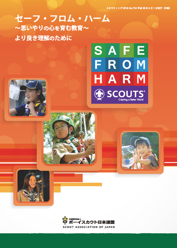 日本連盟では、団内などで対応が難しい内容などの相談を受け付け、解決に向けて必要な支援を行う「セーフ・フロム・ハーム」に関する相談窓口(メール)を設置しています。当事者となり、他の人に相談しづらい内容などがある場合の相談も受け付けます。(研修や資料のお問い合わせは別となります)